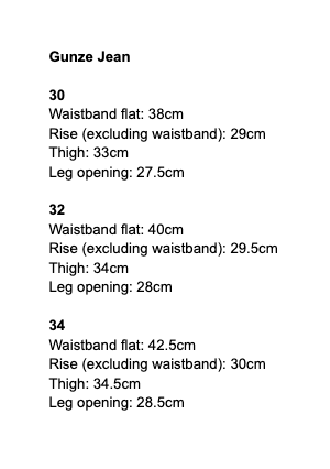 The Gunze Jean has a relaxed fit. Baggy in the leg and fitted through the seat, with a very slight taper at the hem.