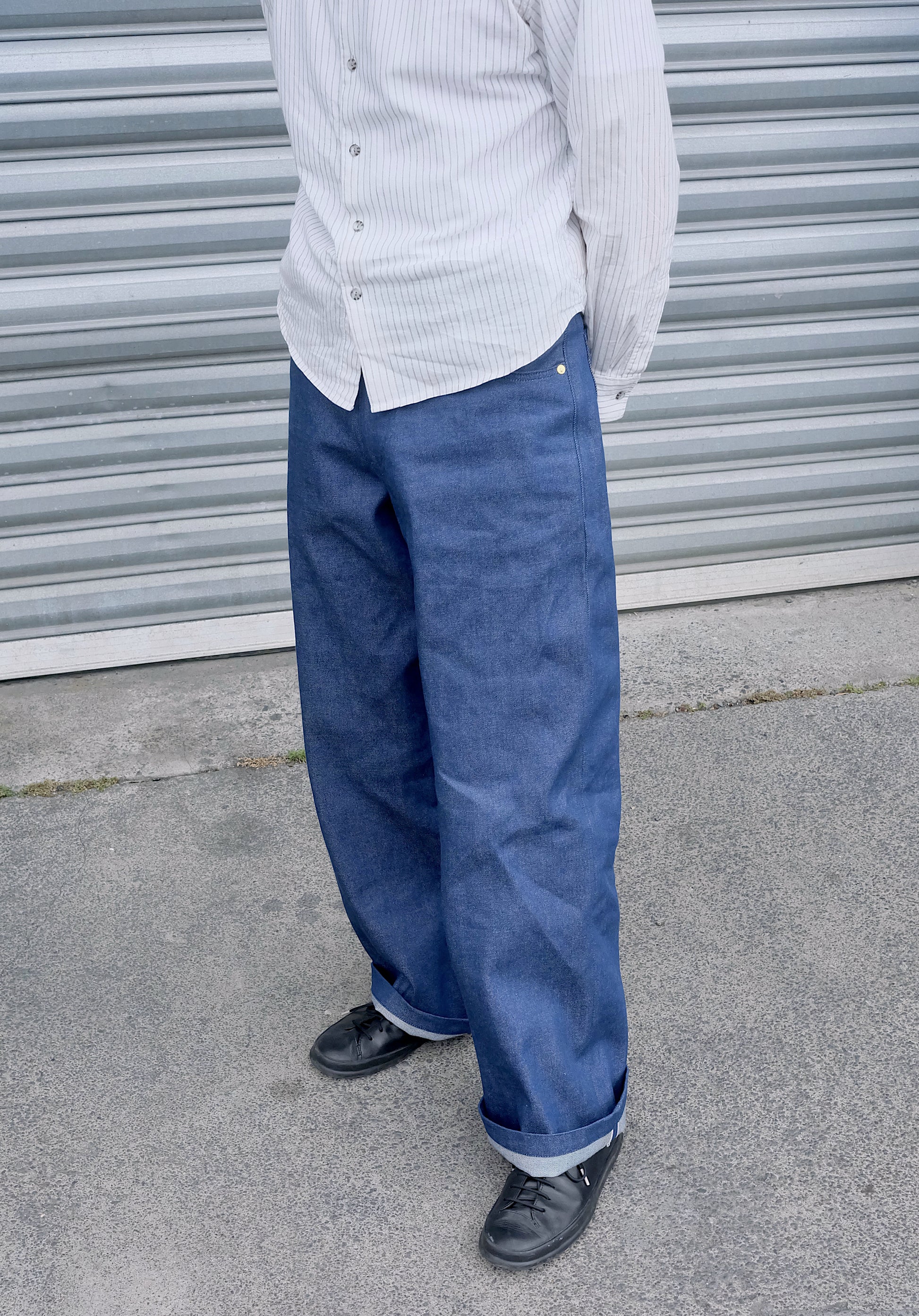 The Kember Jean has a relaxed fit. Baggy in the leg and fitted through the seat, with a very slight taper at the hem.